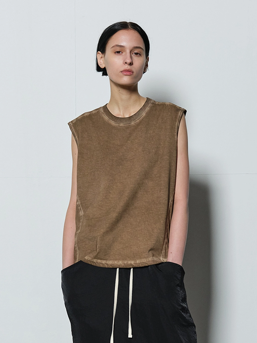 낫온어스 연구소의 중심에는 커다란 체육관 형태의 트레이닝 센터가 있습니다. 이곳에서 가장 눈에 띄는 것이 윤기나는 우드 플로어입니다. 트레이닝 센터에서 근무하는 트레이너들은 주로 활동적인 복장을 입는데 가끔은 맨발에 편안한 티셔츠와 팬츠를 착용하기도 합니다. 사람들은 이 티셔츠를 트레이닝 센터의 플로어와 잘어울린다고 생각해서 플로어 티셔츠라 부릅니다. 트레이너들의 활동성을 위해 길이는 다소 짧고 너비는 넓게 디자인된 티셔츠입니다. 구조적인 패턴을 기반으로 제작되어 입체적인 실루엣을 갖고 있습니다. 뒷 넥 양쪽의 다트, 사이드 부분의 절개 등 모든 라인에 섬세하게 톱 스티치가 들어가 있습니다. 부드럽고 시원한 터치감을 가진 코튼 소재입니다.