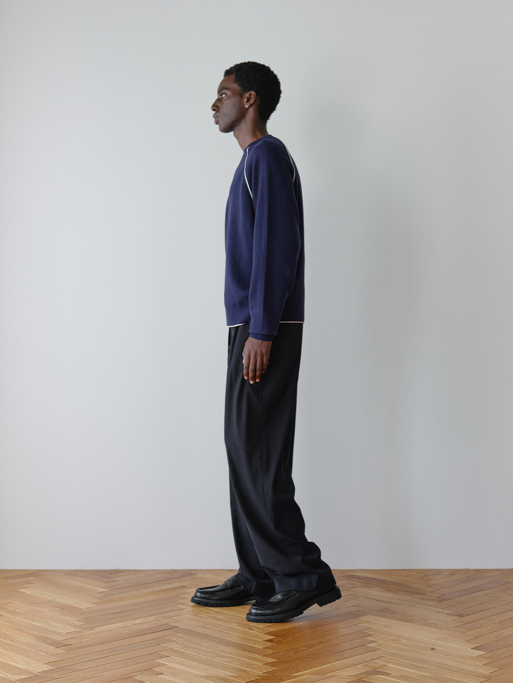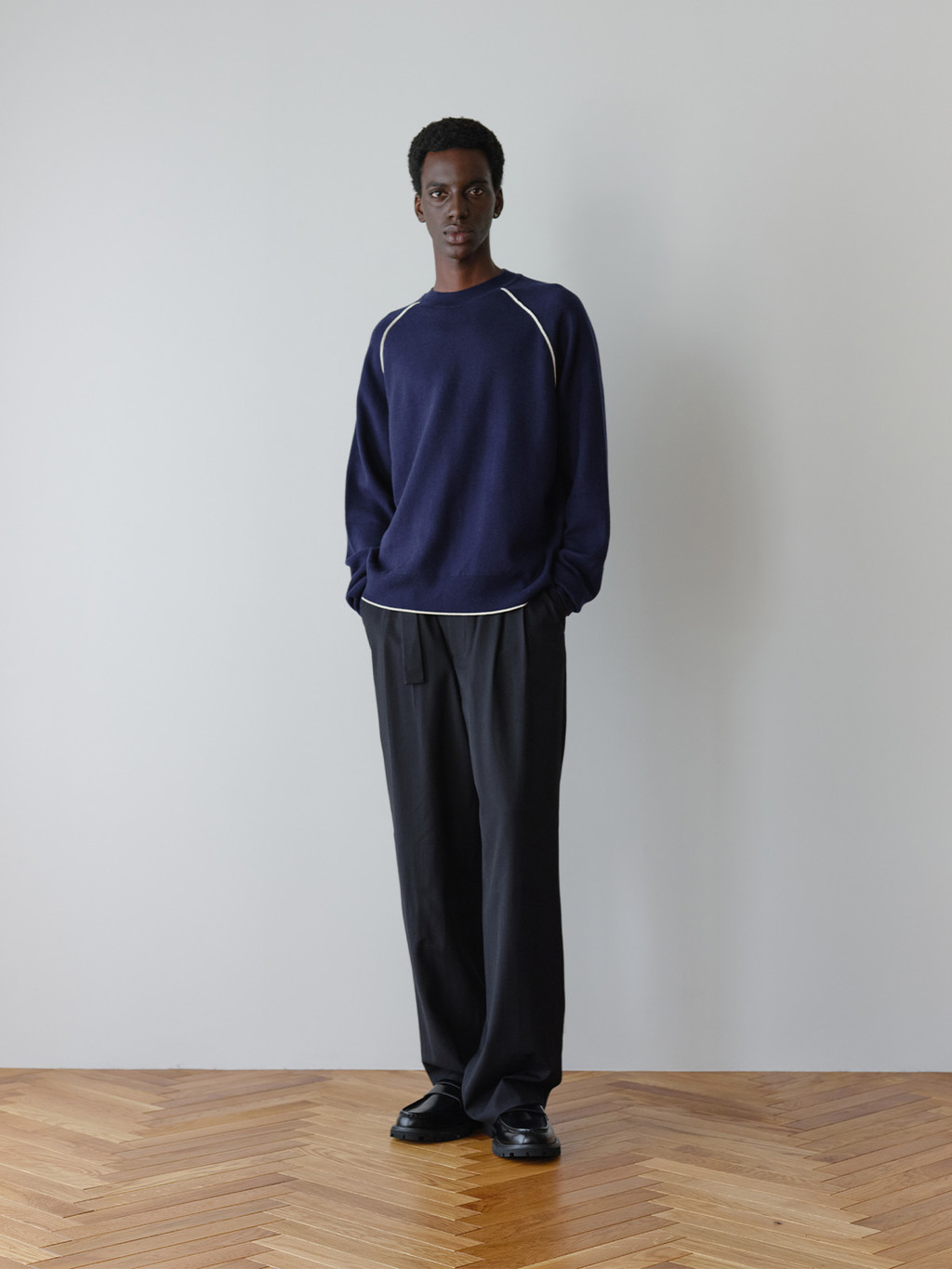 This warm, thick knit pullover chainmail sweater is perfect for the year-end season. Crafted from Italian Pinori yarn, it offers a luxurious feel and weave, with a lightweight and cozy wearability despite its substantial thickness. The ribbed neckline, cuffs, and hem enhance durability, making it a stylish texture-focused piece that adds subtle detail to a minimalist look.