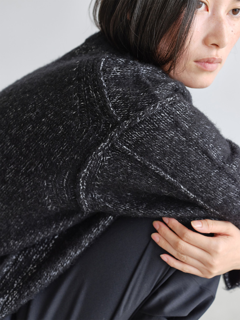 This warm, thick knit pullover chainmail sweater is perfect for the year-end season. Crafted from Italian Pinori yarn, it offers a luxurious feel and weave, with a lightweight and cozy wearability despite its substantial thickness. The ribbed neckline, cuffs, and hem enhance durability, making it a stylish texture-focused piece that adds subtle detail to a minimalist look.