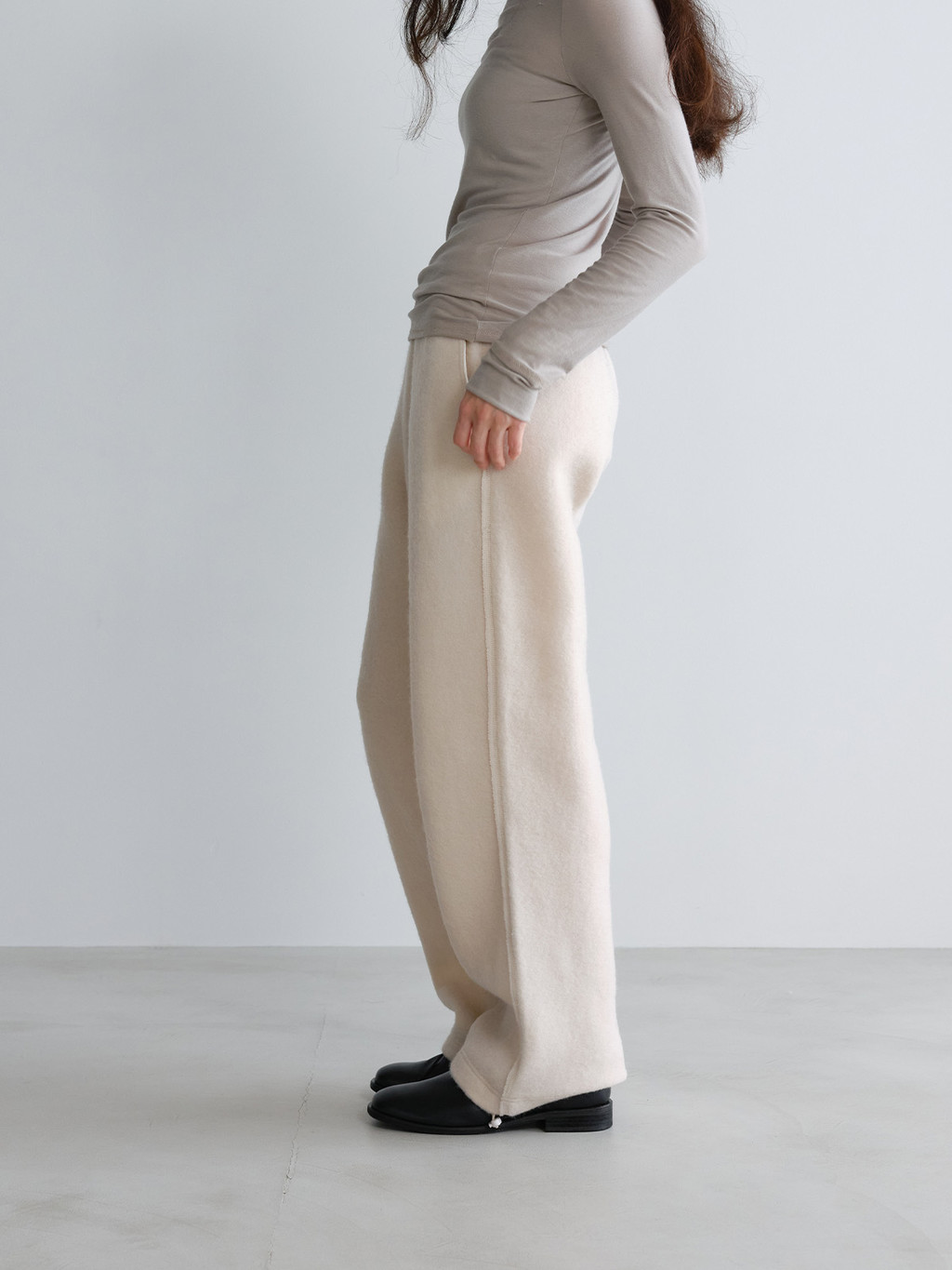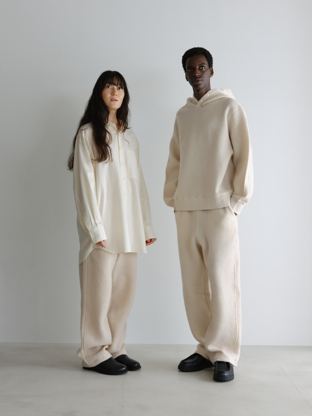 The Coif Hoody features a cozy boucle texture and a balaclava-style hood that wraps around the face. With a relaxed and comfortable straight fit, it can be worn by a variety of body types. The hood is constructed with four panels, giving it a three-dimensional shape, and the edges are finished with ribbing for added refinement. Made from a baby alpaca and wool blend, the boucle texture offers warmth without any irritating hairiness. With its ideal thickness and relaxed length, this hoodie can be effortlessly paired with various bottoms for a comfortable, everyday look.