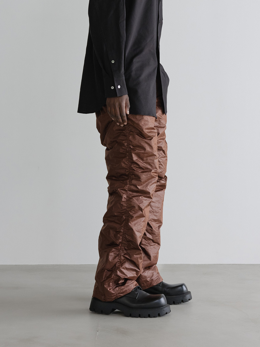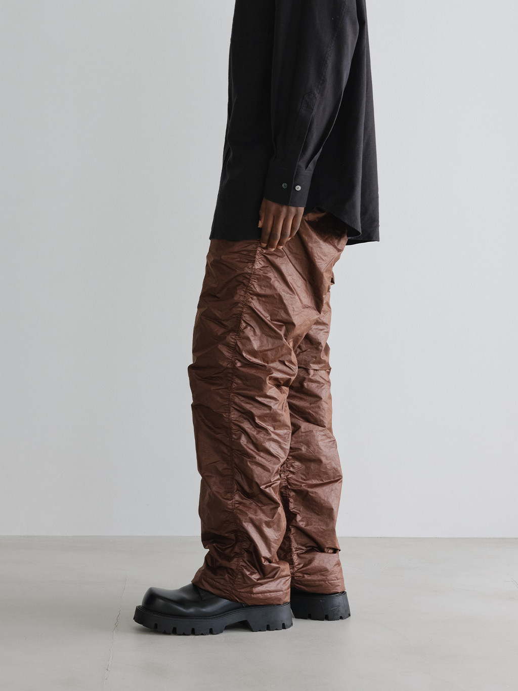 In the west wing of the NOT ON EARTH Laboratory, there is an old main lab surrounded by glass on all sides. We call this the Glass Room. Most of the agents working here are senior agents who have been with the lab for as long as the lab’s history itself. At some point, people began referring to the coats they wear as the Glass Room Coat. This coat features a relaxed silhouette and comfortable shoulder lines, with a subtle and unique tone of color and a pleasantly crisp texture. The long back slit and the NOT ON EARTH signature print patch on the lining add an artistic touch to the coat.