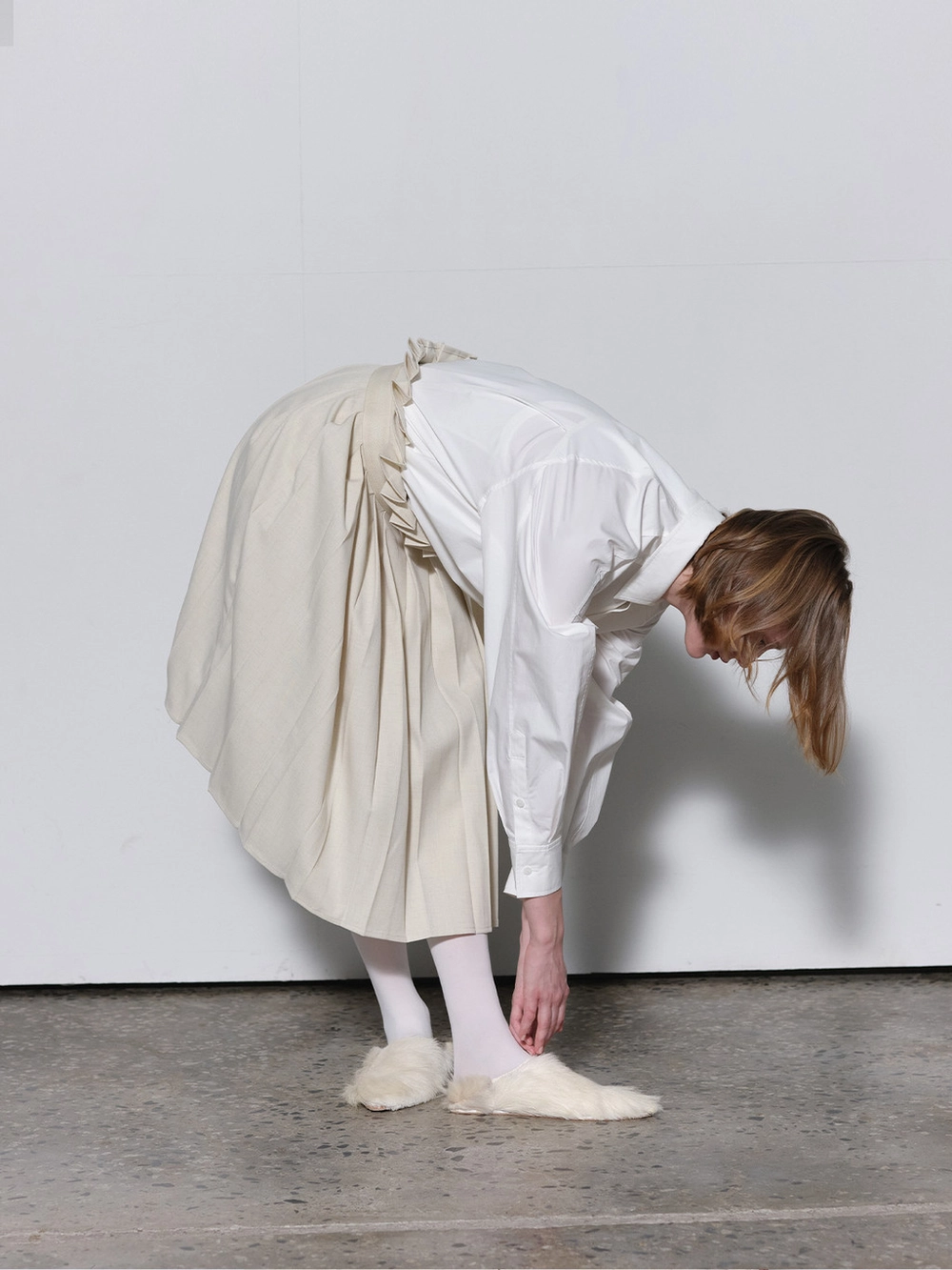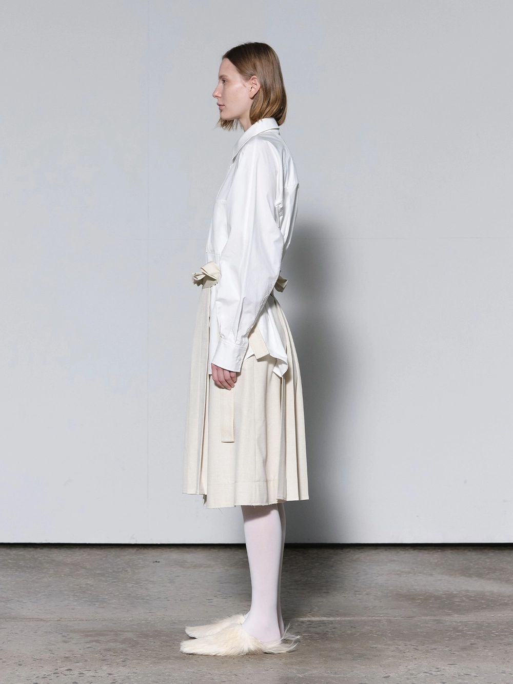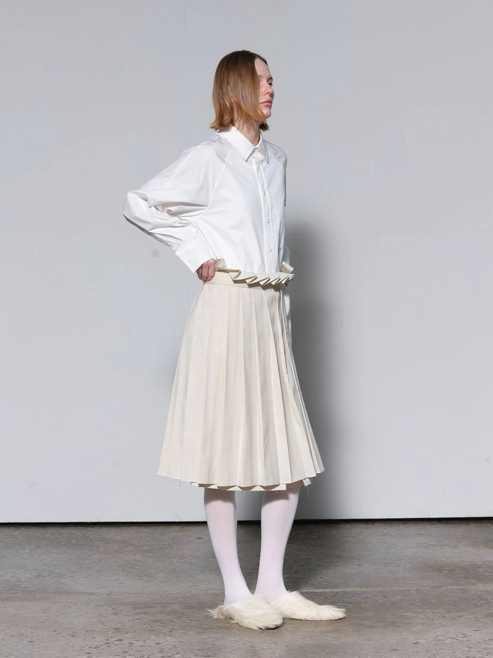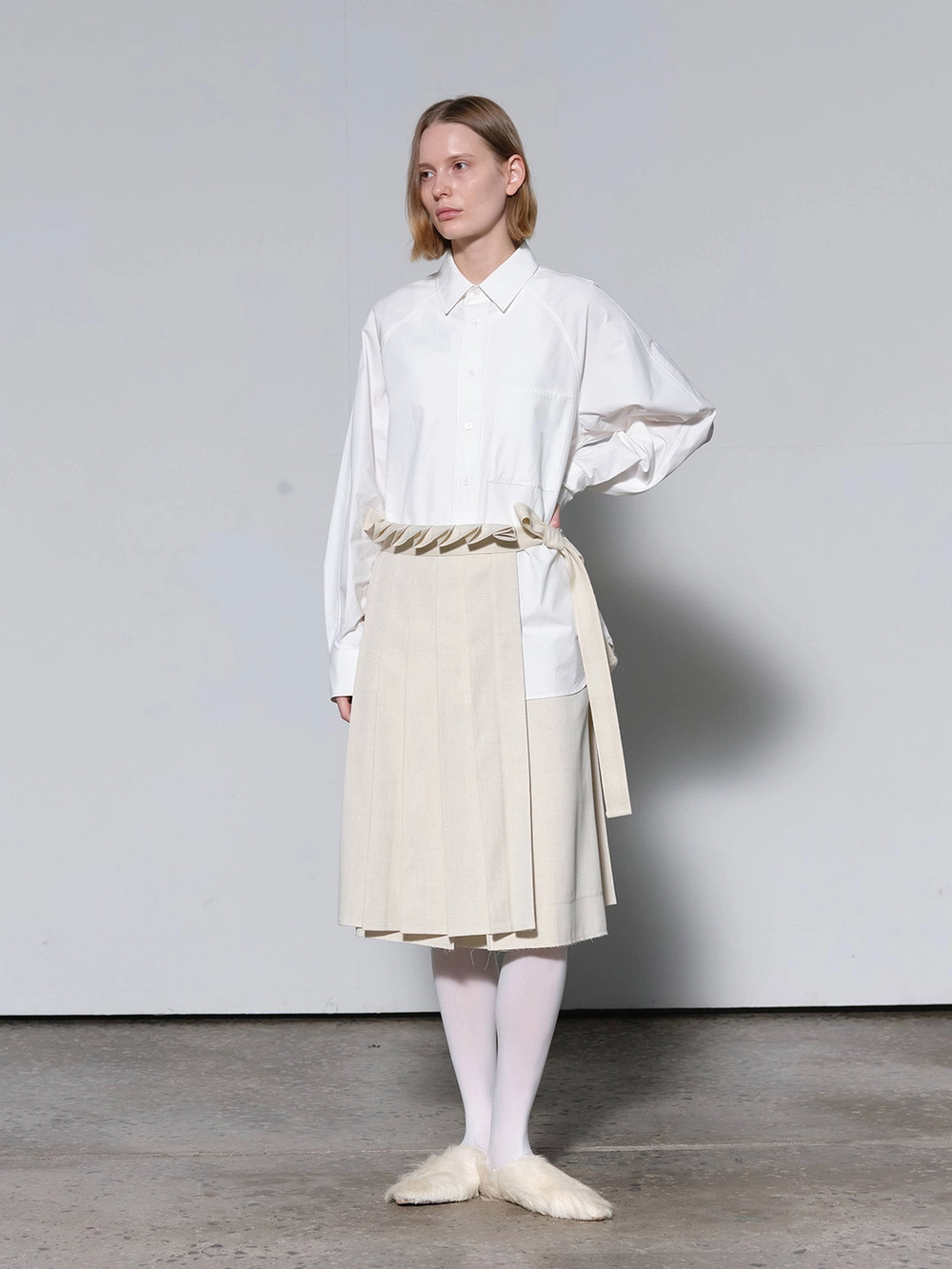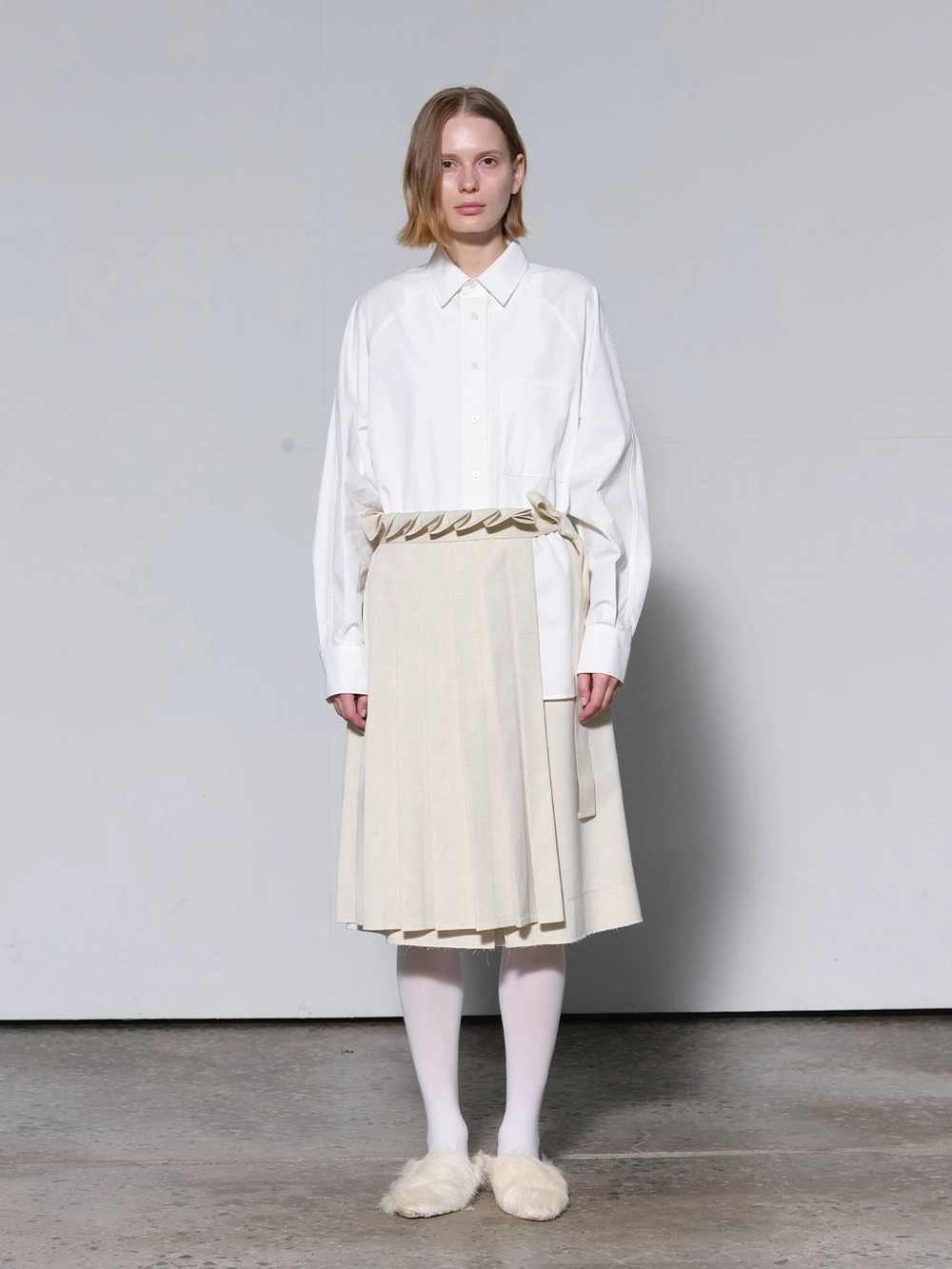 • 미디 스커트와 랩 플리츠 스커트로 구성