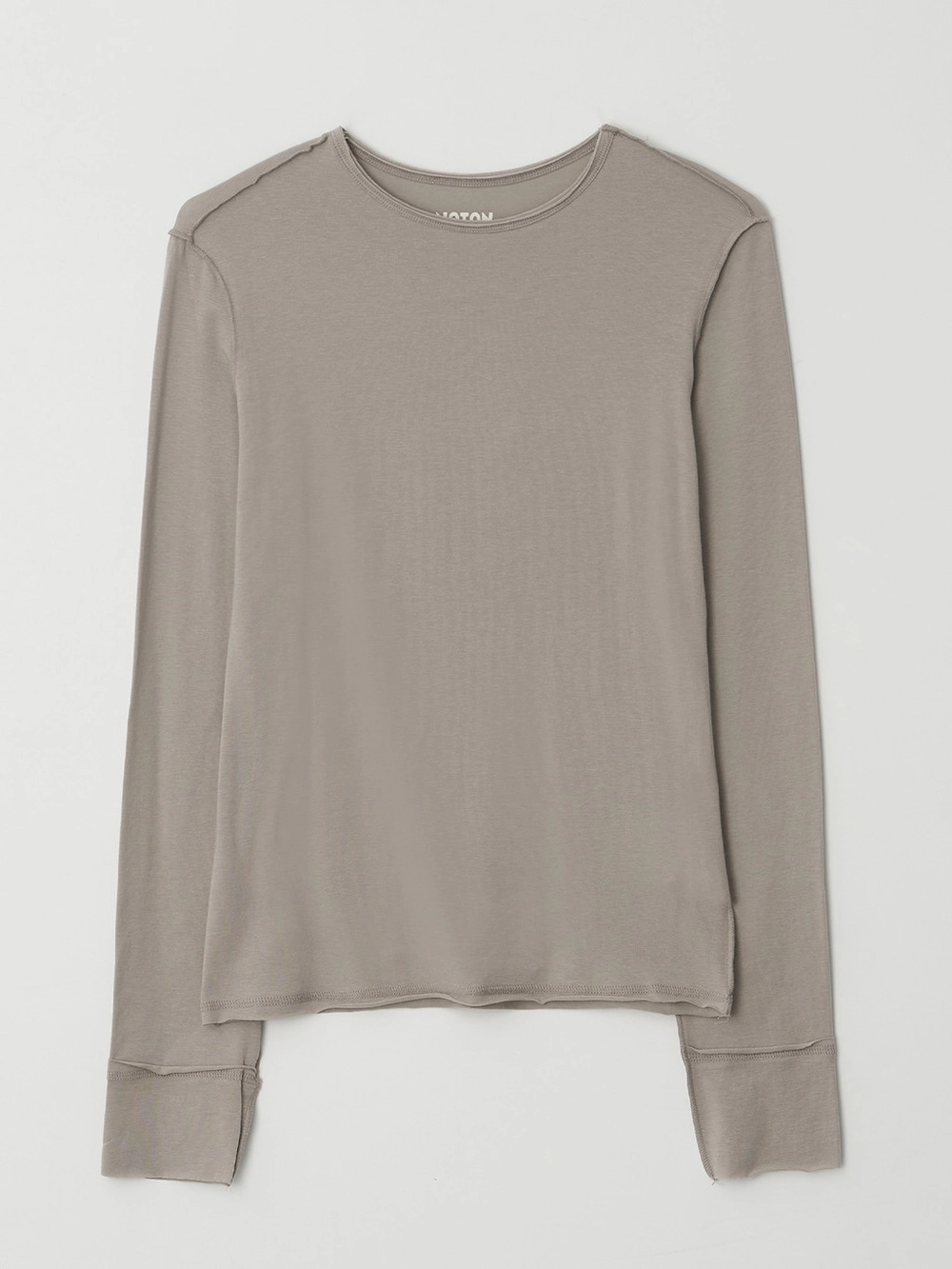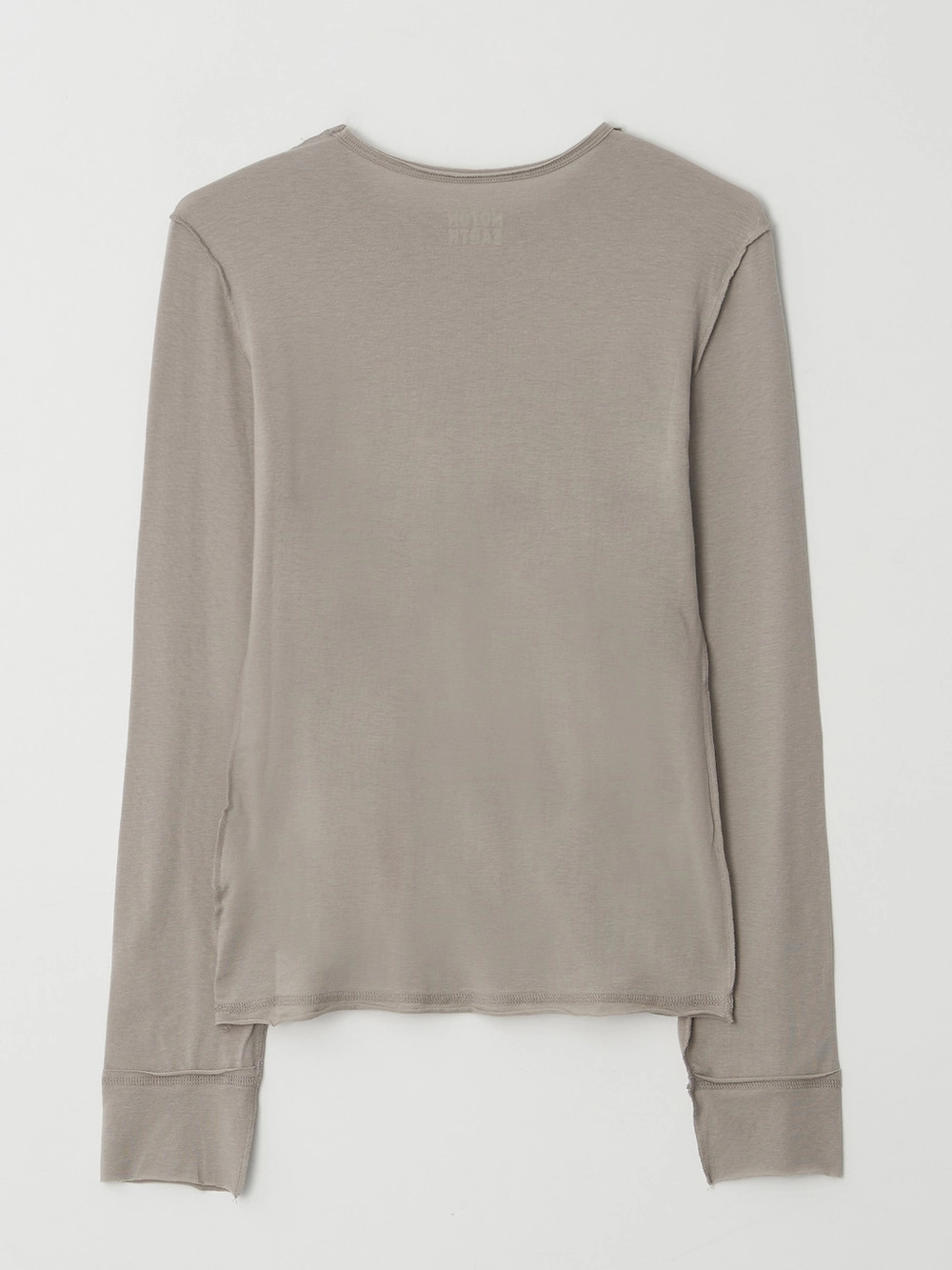 낫온어스 연구소의 중심에는 커다란 체육관 형태의 트레이닝 센터가 있습니다. 이곳에서 가장 눈에 띄는 것이 윤기나는 우드 플로어입니다. 트레이닝 센터에서 근무하는 트레이너들은 주로 활동적인 복장을 입는데 가끔은 맨발에 편안한 티셔츠와 팬츠를 착용하기도 합니다. 사람들은 이 티셔츠를 트레이닝 센터의 플로어와 잘어울린다고 생각해서 플로어 티셔츠라 부릅니다. 트레이너들의 활동성을 위해 길이는 다소 짧고 너비는 넓게 디자인된 티셔츠입니다. 구조적인 패턴을 기반으로 제작되어 입체적인 실루엣을 갖고 있습니다. 뒷 넥 양쪽의 다트, 사이드 부분의 절개 등 모든 라인에 섬세하게 톱 스티치가 들어가 있습니다. 부드럽고 시원한 터치감을 가진 코튼 소재입니다.